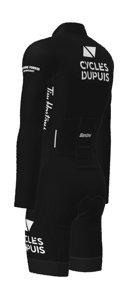Profitez d'une technologie de pointe avec la combinaison cycliste Nova à manches longues, conçue pour offrir un maximum de légèreté et de confort. Le haut est fabriqué dans un tissu ultra-léger, garantissant une sensation de fraîcheur même par forte chaleur. Le cuissard, en tissu compressif, assure un maintien musculaire optimal.